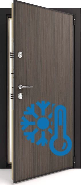 Как работают входные двери с терморазрывом. Известно, что передача тепла идет от теплого к холодному. Представим, что в доме +23, а на улице – 25. Металл дверей – материал с высокой теплопроводностью. Естественно, дверь быстро остывает и промерзает, либо начинает конденсировать.