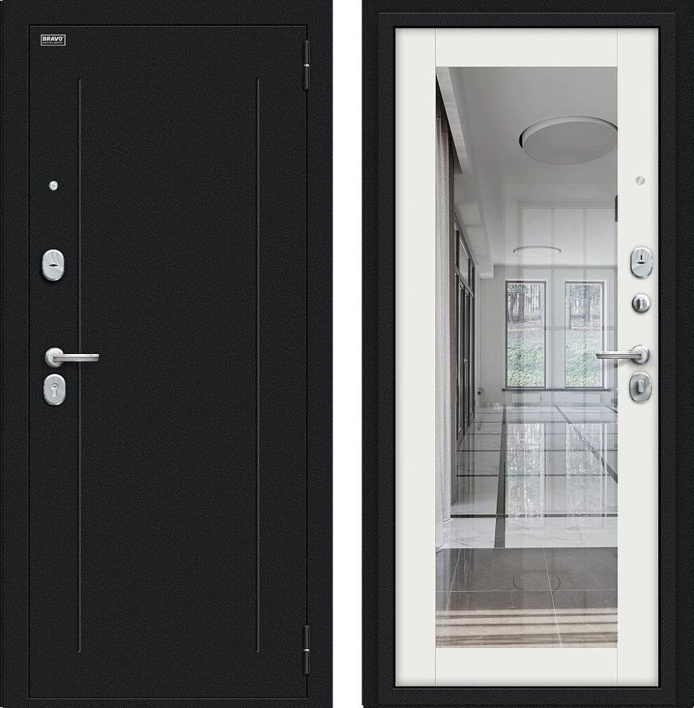 Надежная входная Дверь Браво Флэш Букле черное/Off-white премиум класса по цене 33 899 руб. Большая толщина стали защитит от проникновения в ваш дом, квартиру или коттедж. Используется очень качественная фурнитура: замки, цилиндры, ручки, защелки. Покрытие и отделка двери изготовлено под внимательным контролем производителя. Дверь имеет долгий срок службы и гарантию.