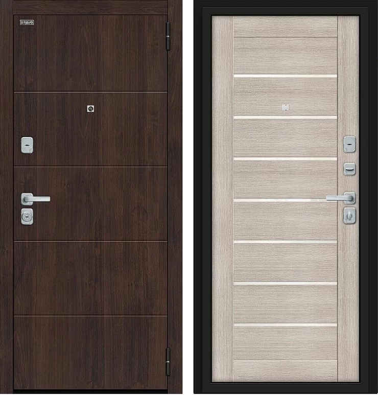 Надежная входная Дверь Браво Прайм/BChrome Almon/Cappuccino Melinga премиум класса по цене 39 849 руб. Большая толщина стали защитит от проникновения в ваш дом, квартиру или коттедж. Используется очень качественная фурнитура: замки, цилиндры, ручки, защелки. Покрытие и отделка двери изготовлено под внимательным контролем производителя. Дверь имеет долгий срок службы и гарантию.
