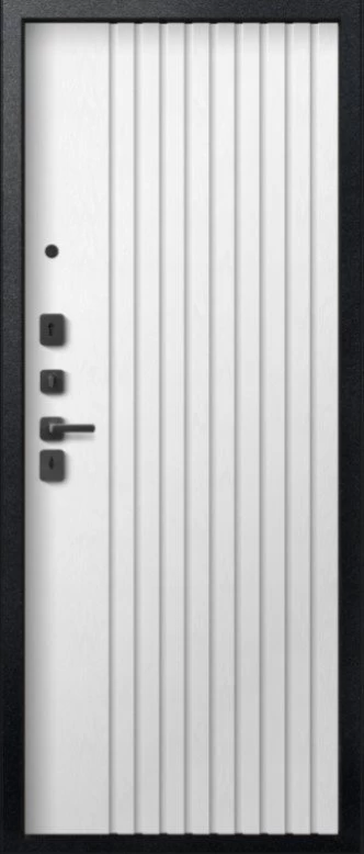 Надежная входная Дверь V-15 Черный муар + Бетон темный - Софт ясень белый премиум класса по цене 43 799 руб. Большая толщина стали защитит от проникновения в ваш дом, квартиру или коттедж. Используется очень качественная фурнитура: замки, цилиндры, ручки, защелки. Покрытие и отделка двери изготовлено под внимательным контролем производителя. Дверь имеет долгий срок службы и гарантию.
